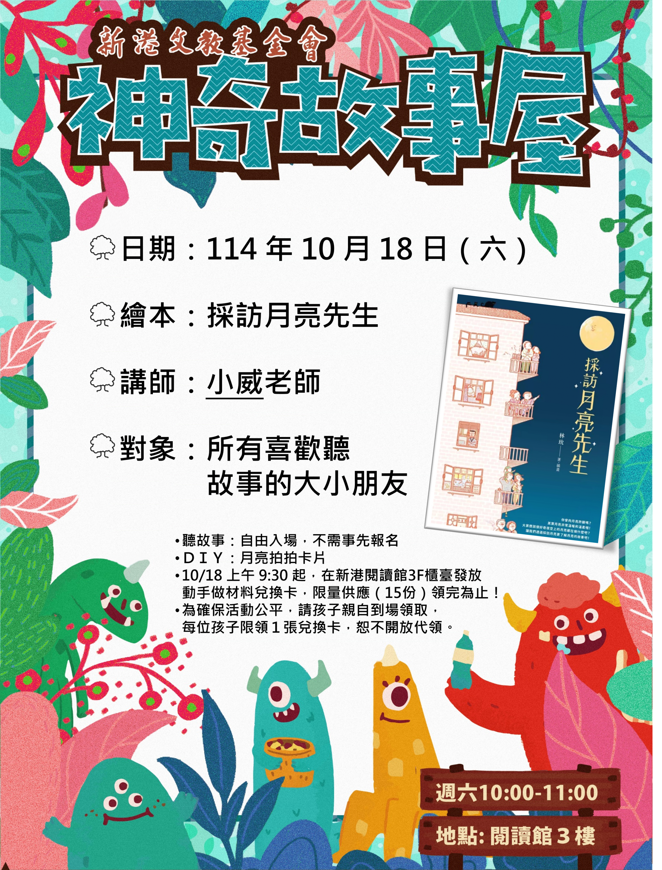 ◖10/18 上午 9:30 起,在新港閱讀館3F櫃臺發放「動手做材料兌換卡」,限量供應(15份)領完為止!