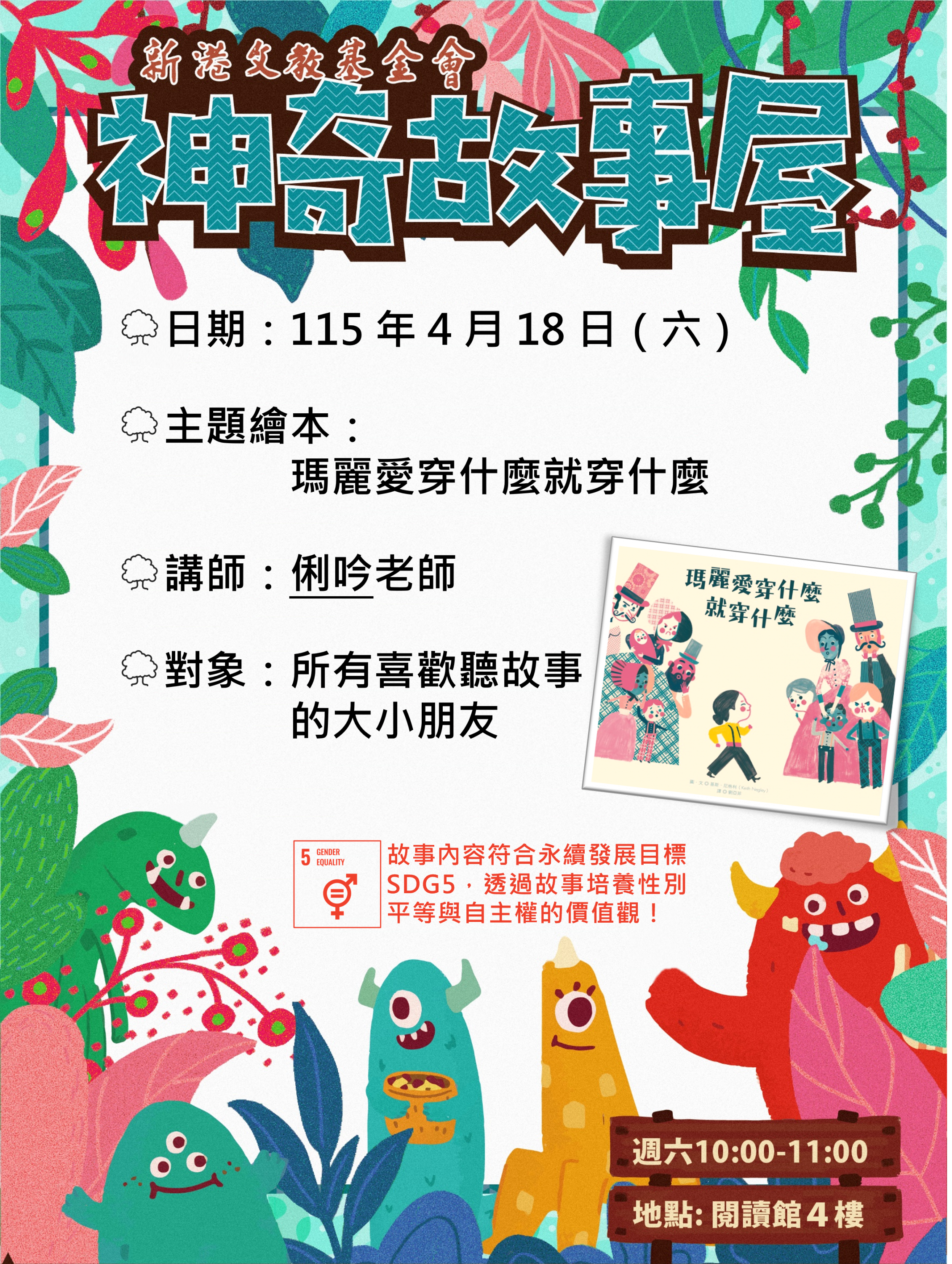 這堂課不只聽故事,更是讓孩子學會尊重差異、擁抱自我的魔法時刻!快來新港閱讀館,一起穿出屬於你的風格。