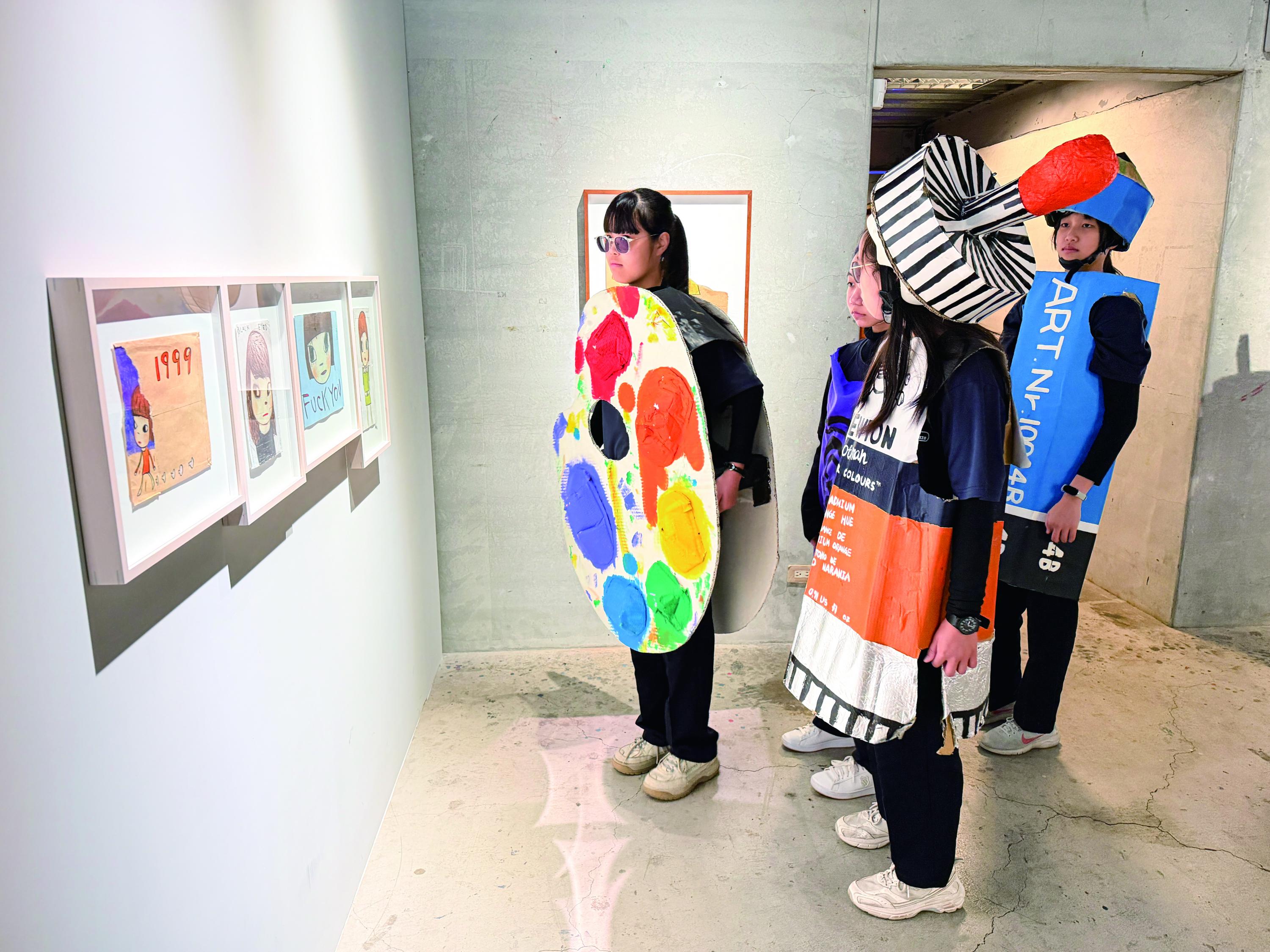 那是一個平凡的午休,我與美術藝才班的學生邊畫畫邊閒聊,討論著去看奈良美智展覽時該穿什麼。幾個學生趴在桌上,一邊笑到發抖一邊提議:乾脆穿上自己用各種媒材做的「超大畫具服」去看展吧!