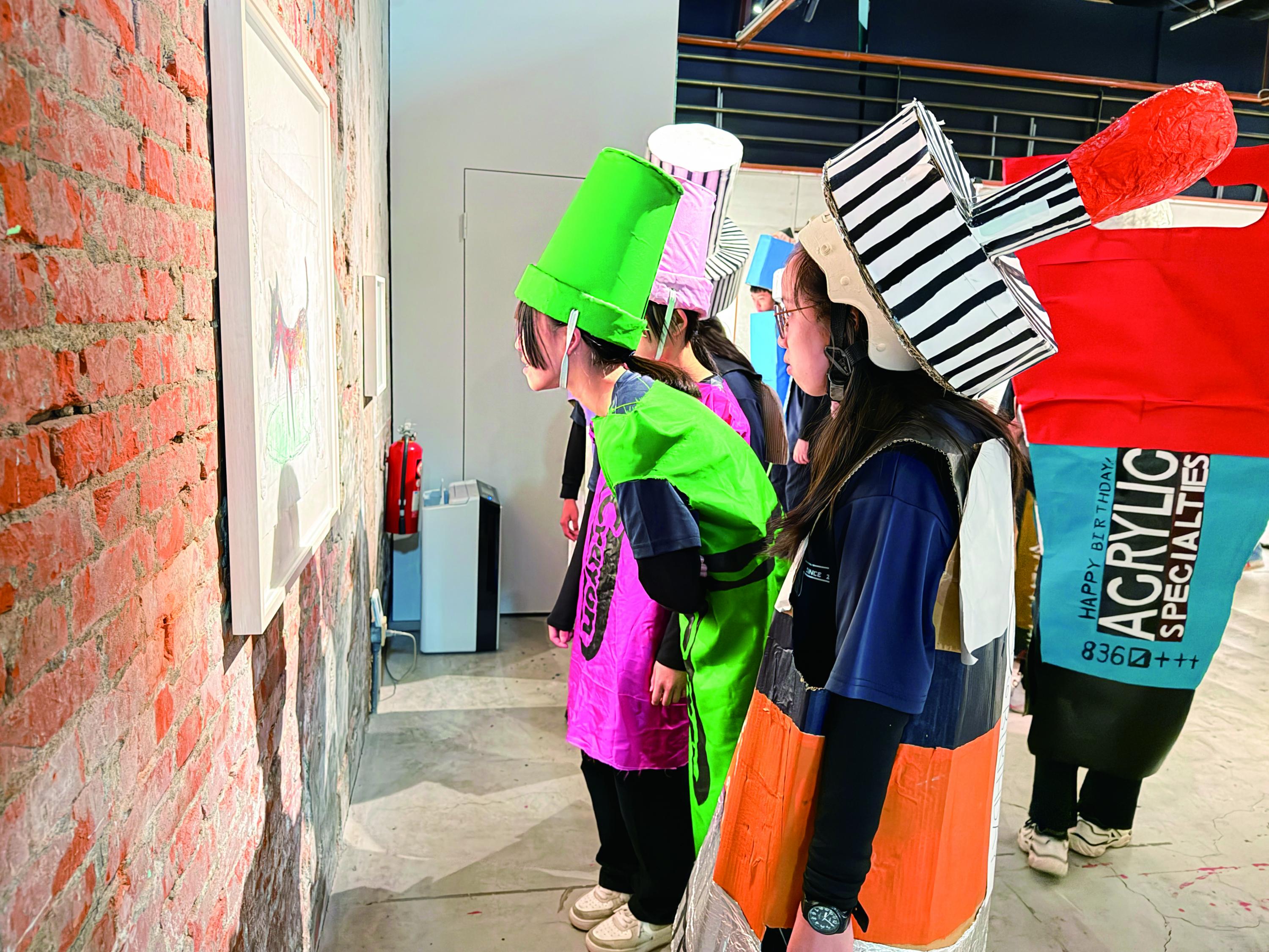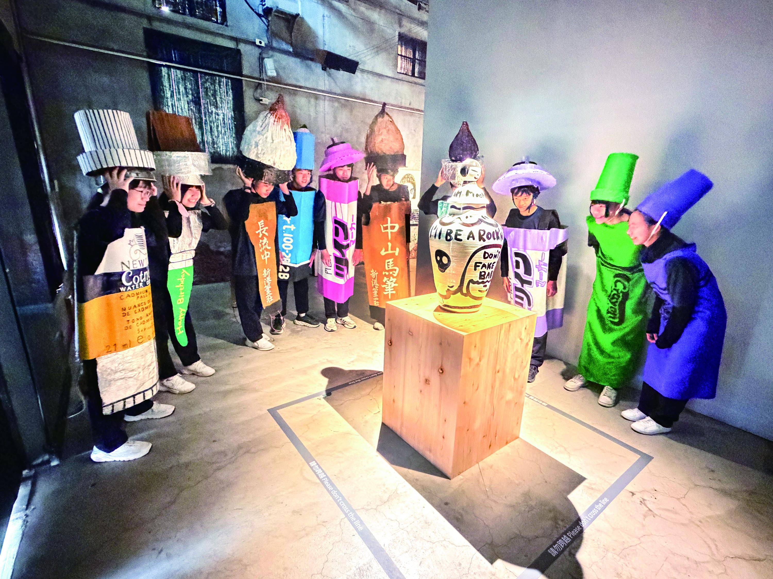 想像頭頂筆毛、身穿筆桿,大家腦中瞬間浮現出一群「大鉛筆」與「大水彩」穿梭在展場的超現實畫面,你一言我一語,細節越補越瘋狂。同為美術人的我,深感人生有時就是需要一點失控。於是,這股熱血從學生蔓延到導師,甚至連新港文教基金會執行長也跟著瘋狂,計畫一路綠燈直接執行。
