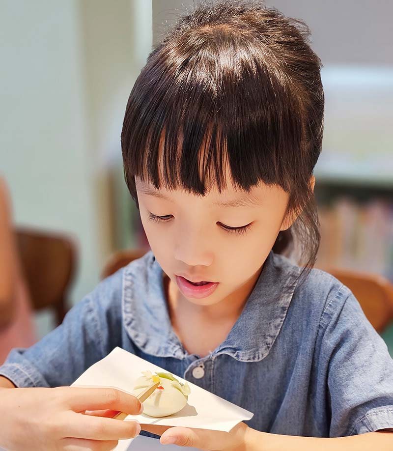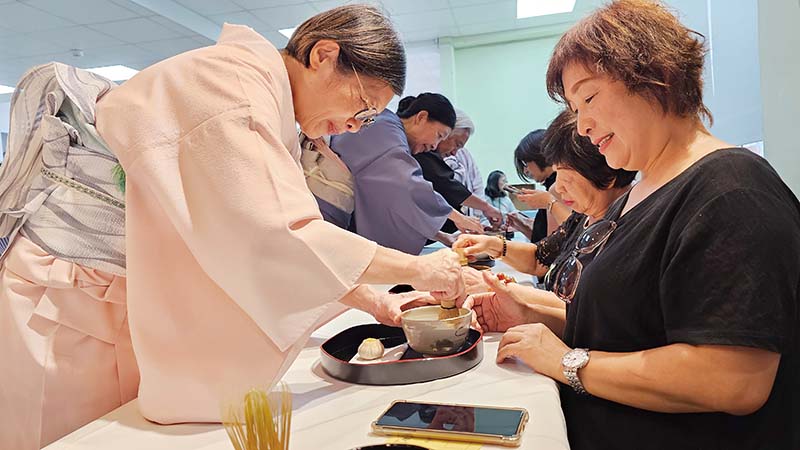 來自嘉義市的王佩秋提及參加「喝一碗日本抹茶」,因為提早報到,所以很幸運能和精通茶道並穿著和服的翠華老師合照,埸地佈置擺了一把大紅紙傘寫著「和敬清寂」並插小花及1支香特別吸引她。開埸後講師先解說日本茶道起源與精神,示範端茶碗禮儀,和好喝的抹茶得用茶筅以M型快速來回刷動,刷出細小綿密的泡沫。但她刷得手好痠,經講師指導後,很快就出現泡沫了,讓她體會要掌握力道和用對方法就能輕鬆喝一口好抹茶。因為抹茶微澀,喝之前會先吃和菓子,但看到精緻又漂亮的和菓子,當下大家都很捨不得切下吃。