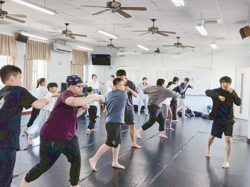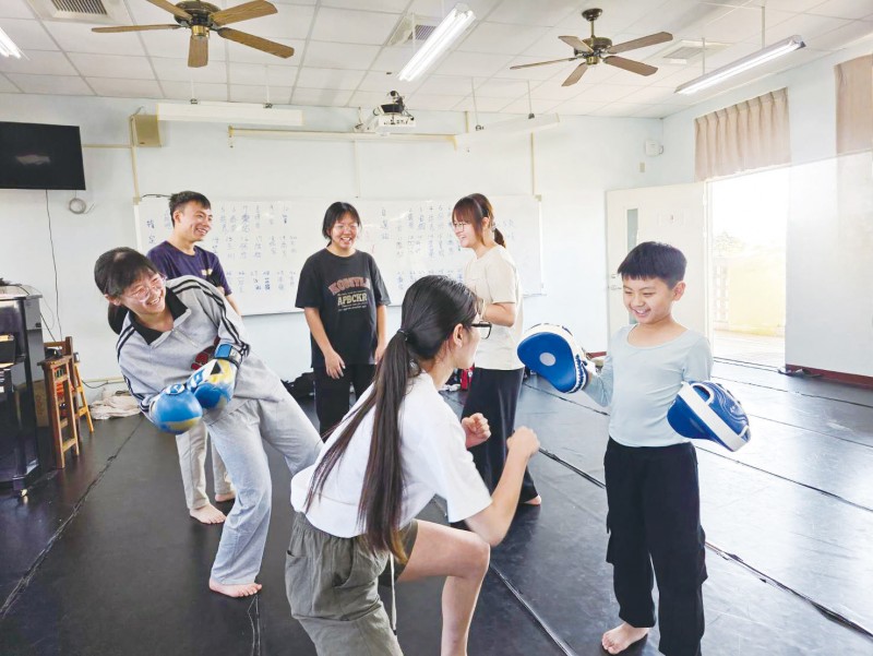 上午的課程安排了防身術與拳擊體驗,在專業教練的帶領下,孩子們從基本的站姿、步伐與出拳開始學習。課程中強調的不只是動作技巧,更重要的是建立自我保護的觀念與臨場判斷的能力。教練也特別提醒孩子們,防身的核心並不是攻擊,而是學會在危險情境中保護自己、拉開距離並尋求協助。對許多孩子而言,這是第一次接觸拳擊與防身術,在過程中,他們不僅流了許多汗,也逐漸建立起信心與勇氣。
