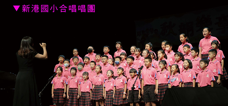 接著新港國小合唱團演唱鄉土歌謠「火金姑」和「鯽仔魚娶某」,青春律動的童聲,一下子歡樂熱鬧了起來,青銀接力,前輩攜手後輩,將愛新港的那份心意,傳唱也是傳承,傳承義工精神、新港精神!