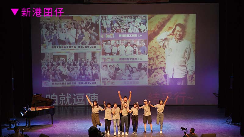 印尼移工在台灣,組團歡唱,以不插電的方式改編流行歌,豐富我們的視野。壓軸是新港囝仔透過王彙筑與娜塢老師的指導,發表原創曲「結乎行」,道出新港人離家求學,返鄉後深耕在地的心路點滴,曲末全體義工以集體力量,台上台下大合唱,團結「結乎行」,成就一場集體音雄,致基金會36周年慶!