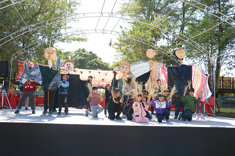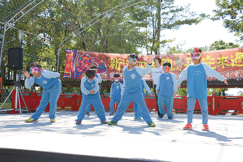 每年的擲筊大賽總是長龍大排,今年分別有文昌筆200名、平安麵龜2名,以及三官燈1名的獎項,只要一杯聖杯就可以把文昌筆帶回家,可說是幾乎人人有獎。會場還有「稻草人票選活動」,食農教育增添趣味與群眾互動。北管、歌仔戲、布袋戲的文化體驗,難得可以近距離接觸歌仔戲,粉妝、戲服特別吸引人;童玩體驗有大型彈珠台、吊酒瓶、套圈圈;食農教育則有紅龜粿製作、爆米香、烤地瓜以及注連繩體驗;閱讀教育有神奇故事屋與排古書販的二手書和絹印畫。大人、小孩動手實作或體驗裝扮,不分年齡都是學習。