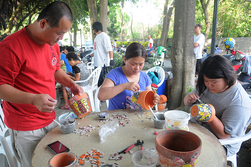 藝術家夫妻檔陳明鈺和蘇冠印,進駐第一次辦藝術工作坊的南港社區,他們要運用馬賽克與紅瓦盆栽兩種元素,激發社區民眾天馬行空的想像力,各自完成屬於自己的馬賽克盆栽後,再運用這些盆栽佈置在社區民眾的聚集點—河堤左岸(水仙宮後方的堤防邊)。