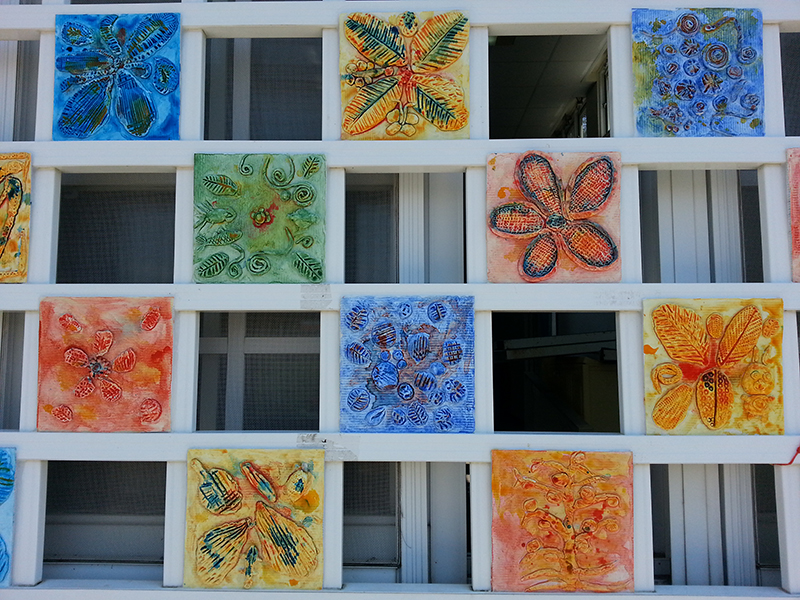 藝術家不預設立場的風格,阿嬤們大膽創作中帶點童趣的狂想,是這次埤子社區的「花漾浮雕」的特色。運用紙黏土簡單塑型的特性,阿嬤們捏出孫子愛吃的牛排、薯條,在田裡看到的蛇,喜愛的植物,再上壓克力顏料、塗上保護漆,成為美麗的浮雕。藝術家讓阿嬤們在構思作品時,也練習手指(掌)的握力;在創作遇到瓶頸時,透過適切的引導、激發,完成自己的原創。