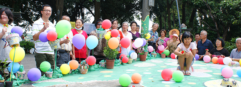 4~80歲的街坊好厝邊,連續八週與藝術家夫妻檔蘇冠印、陳明鈺一起完成自己的馬賽克花盆,取南港水仙宮香火鼎盛與信徒結緣的意涵「好緣滿盆」,和河堤邊動植物生態兩者結合,以綠色為基本色調,藝術家並實地勘查河堤生態與社區討論,決定以松鼠作為意象,運用馬賽克及就地取材共同創作出兩隻或坐或躺的可愛松鼠。作品成果並裝置在南港水仙宮後的北港溪畔,也就是社區居民平日散步、乘涼、開講的好所在──南港左岸。