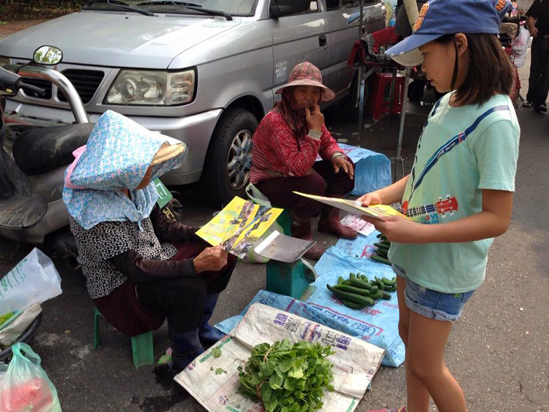 這是第二次的新港新玩藝,可以感受到每個人都全力以赴,孩子們的表現更是棒,演出日的早晨,帶著妮妮等幾個孩子到新港菜市場,騎著自己動手布置的廣告單車,一一邀請市場的攤商、買菜的媽媽阿嬤來歡賞,人與人的溫度如同太陽一樣熱情!