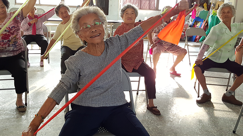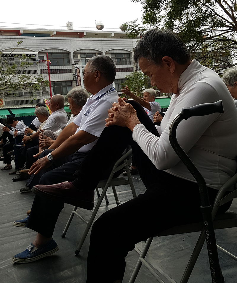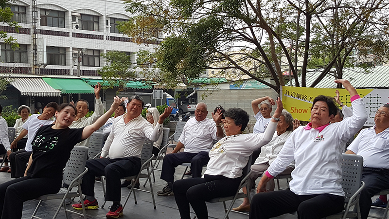 人體的老化是隨著時間持續發生,不可扭轉且無法抗拒的變化,這些退化對人體的日常作息有著重大的影響,所以在帶領活動之前的首要條件是思考老人家無法久站的問題,更不希望長輩們在活動期間因無法負荷,導致兩三個動作之後就興趣缺缺的離開,因此讓長輩們產生興趣是很重要的一件事;其次是選擇一個安心的模式,讓長輩們坐在椅子上運動,讓他們的重心有一個完全的依靠,這樣的規劃,我卻得到一個意外的收穫,那就是行動不便的長者也可加入,實際受惠更多的人。