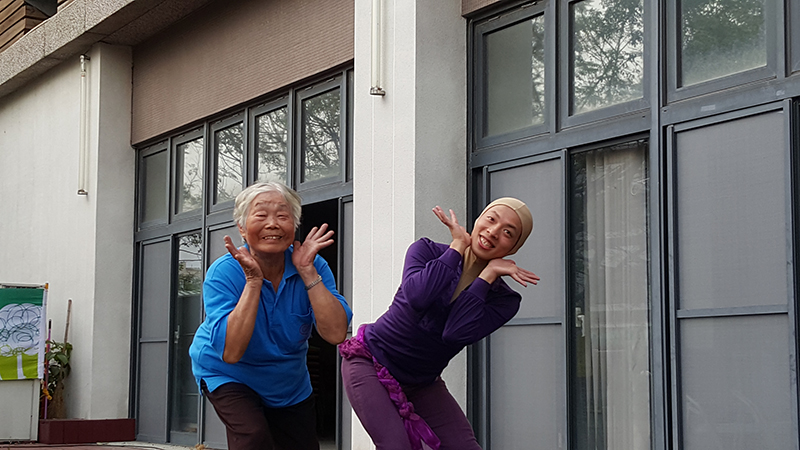 很高興這次應新港文教基金會的邀請,來到美麗的新港,跟一群可愛的阿公阿嬤們做肢體開發的交流,是個很棒的經驗,每週都有不同的驚喜,從第一周生疏的眼神,第二周姍姍來遲,進而開始有人提早前來搶位置,慢慢的會說老師你帶著我做一次好嗎?參與的阿公阿嬤們越來越踴躍,認真的模樣讓我改口稱呼他們大哥大姐,大家勇於嘗試跟自己的身體對話,與自己身上的無限可能做最大的努力。古民村有一位阿嬤更是讓我感動萬千,她行動不便,但從沒缺過課,一步一步拿著助行器慢慢地走到位置上坐下,一個一個動作慢慢的跟,從不放棄自己,看到她的努力,我帶領的更起勁。