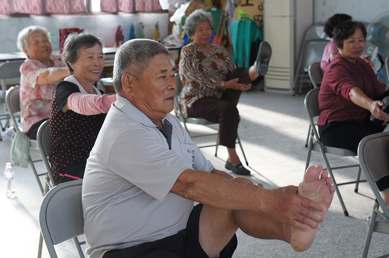 其次是要感謝阿公阿嬤們忍受我的破台語,我竭盡所能全程用台語上課,但還是常有舌頭打結的狀態。最實惠的是,透過此這次的機會,讓我更印證了長年提倡的說法「勞動不等於運動」,這次參與的阿公阿嬤們,多數都在農村長期的勞動,有過度使用的傷害及肌肉僵硬的問題,如何讓這些僵硬的肌肉舒緩,我們從呼吸延伸及延展,同時我將自己長年學習的太極導引融入課程,慢慢的扭轉伸展運動,在引導下放鬆僵直的筋骨,慢慢改善痠痛的狀態。有些長者剛開始有些部位因過去曾經受過傷而不敢使用,但一周一周過去,他們在緩慢的行動中慢慢叫醒那些因受傷而沉睡的肌肉,不再有人只是坐在位置上看別人動身體,而是努力地轉動自己的身體,不論是伸展扭轉,甚至拉筋,都會看到他們認真的模樣,當大家都活動起來的畫面,站在前面引導的我是多麼愉悅的享受啊!