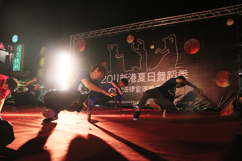 晚會開場前,由嘉義地檢署林素灑督導觀護人,向會場觀眾作反毒、反賄選有獎徵答,觀眾們反應熱烈,紛紛舉手搶答。在此要特別感謝嘉義地檢署反起訴處份金的公益補助。這次報名的團隊共有10隊,最具特色的有:全新的「新港奉天宮熱舞團」由奉天宮的員工組成,現在正值香客熱潮假日都是忙翻了的奉天宮,員工還抽空練舞共襄盛舉,真感心啊!「三間排舞教室」哇嗚,今年進步很多喔!三間社區的媽媽們很團結、很有創意是早就知道的,想不到舞步也越來越厲害呢!再來登場的是新港難得見到的高中少年家,大家紛紛交頭接耳「是哪裡來的啊?」地板動作、頭旋、掃腿……超帥氣!別懷疑,這群是新港囝仔和他們的好朋友自己來報名的,可惜只有一首,真是不過癮啊!接下來就是讓全場為之瘋狂的「雪翎舞蹈團」帶來一連串的中東肚皮舞,既優雅又性感的舞風,讓現場莫名又多出一大半觀眾,正在進香的香團、太子爺、七爺八爺也忍不住直回頭瞧,轎班員工都停下來看了。活動在壓軸新港名產「嬉班子非洲鼓舞團」奔放的非洲鼓聲、絢麗的非洲舞衣、揮汗動感的非洲舞表演中完美落幕。台上三分鐘,台下十年功,感謝所有團隊一起努力,完成每次的夏日舞蹈季晚會!