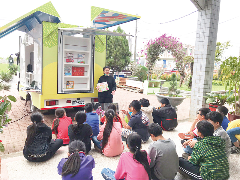 灰色的車身上面鑲著孩子閱讀的畫面,是第一代「維泰號」的外貌,像座寶庫,一掀開車蓋,一台台的小推車,上面擺著各類的書,提供鄉內國小及偏遠社區的巡迴借閱服務,開啟孩子閱讀的視野,拉近孩子與書的距離,滿足孩子們對書的渴望。