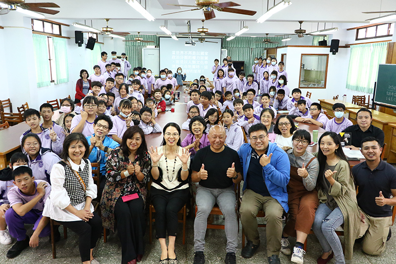 林老師從關懷環境保育,自然生態保護及社會人文發展等創作出發,在兩個多小時中,這是一場笑中有淚、感動中有啟發內觀的演講分享,每個作品都有故事,且對大地中有情感流動。新港國中第一屆藝術才能美術班,有機會了解到藝術與環境間的聯繫,運用空間感,崇敬自然,融合地景藝術,述說每個生命的總合,這不是在課堂上能學習到的。