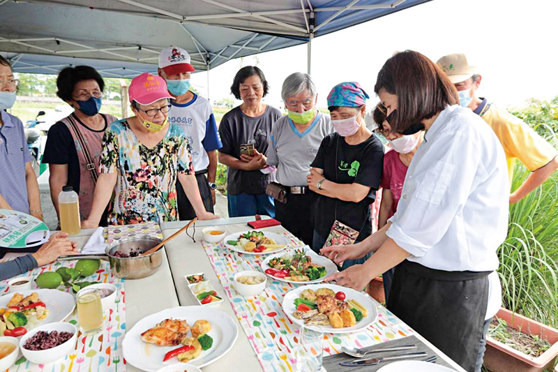 短短三個小時,各組都已完成烹食,讓Cindy 老師大感意外,原本她還擔心菜單多樣會料理不完,沒想到農場組義工手腳俐落,而且色香味也超乎期待,並藉此機會教大家學習食物擺盤及餐桌禮儀,整個培訓學習過程,義工們收穫滿滿。