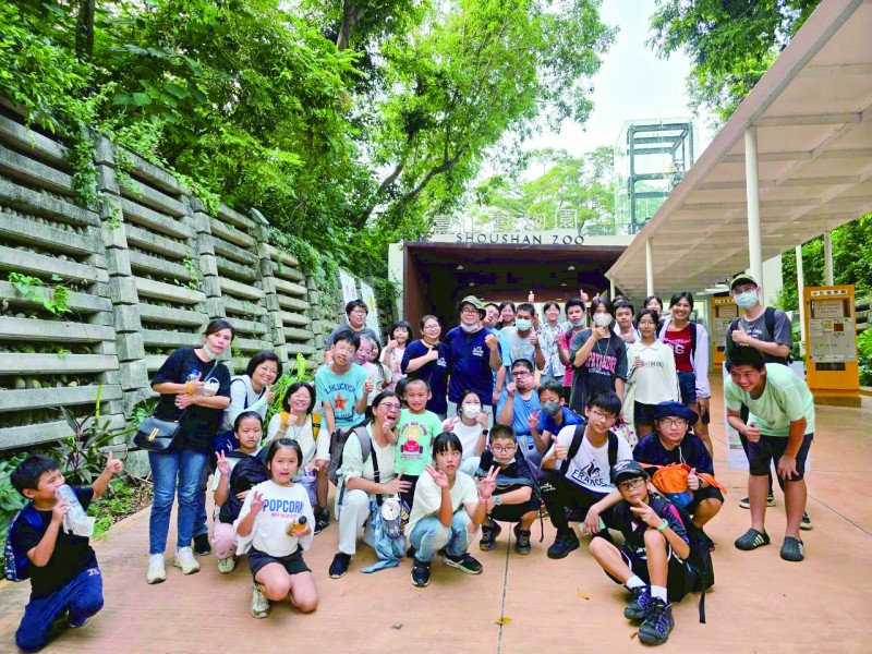 下午,我們來到壽山動物園。一下車,大家立刻遇到在園區外活動的野生猴子,孩子們又驚又喜,有些被嚇得往後退幾步,氣氛既緊張又興奮。就在這時,園區的宣導員出現,提醒大家要「背包前背、水壺與手機收起來」,以免被好奇又靈巧的猴子搶走。家長們趕緊協助孩子整理物品,整隊進園的過程增添了刺激感。這突如其來的「猴子迎賓」成了孩子們印象最深刻的畫面之一。