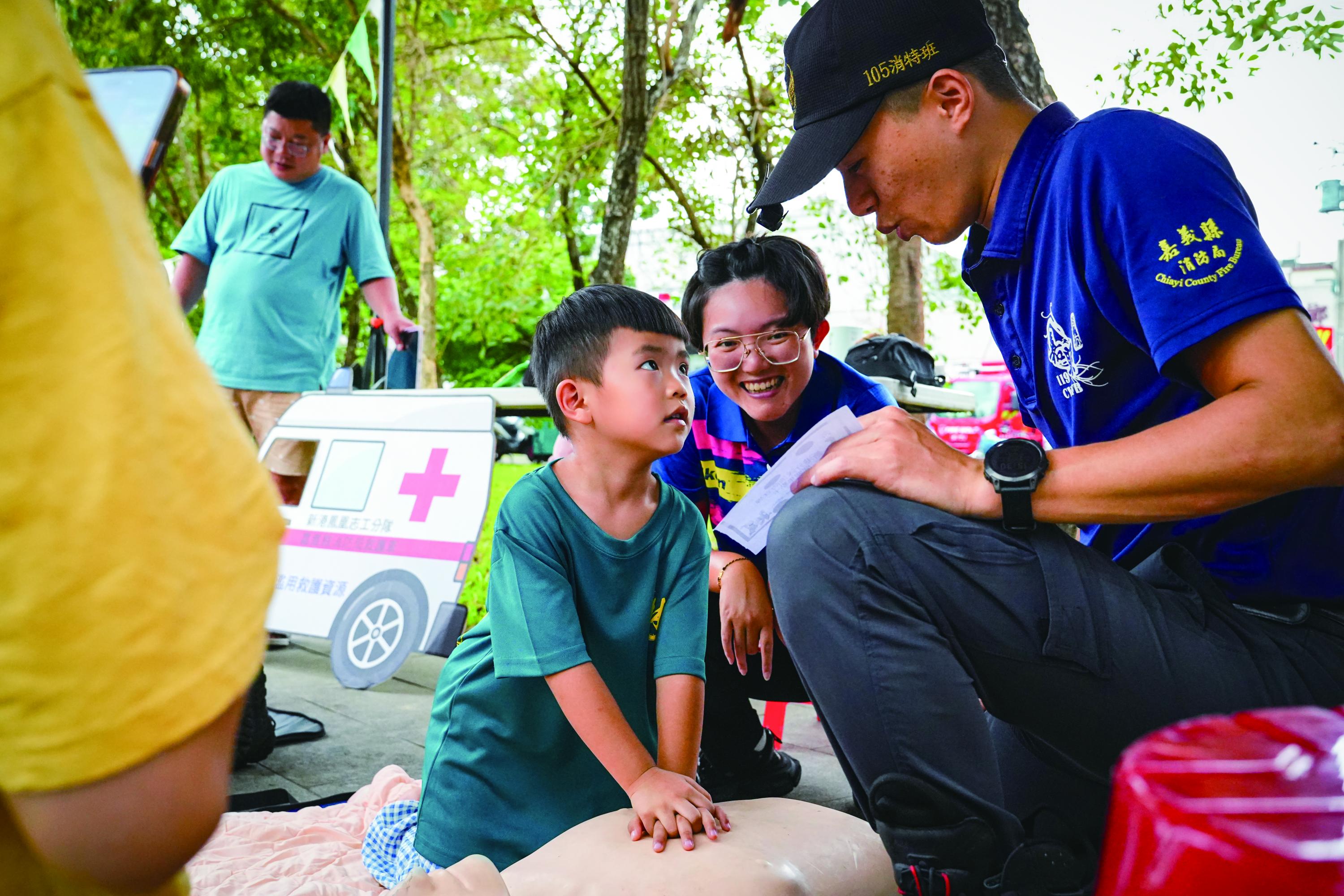 市集的商家熱鬧滾滾,火雞肉、滷味與肉粽帶來傳統的家鄉口味;甜點、咖啡與芒果汁帶著洋派的流行;多肉植物、竹編工程、編織手作展現創意風格……,另一角落的防災、救火噴水、地震防患和射箭運動的指導,吸引的大小朋友的駐足。多元的活動,吃、喝、玩、樂與學習,都融合在市集的人潮中。