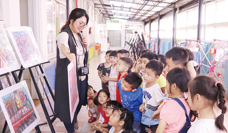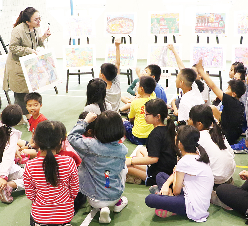 目前已經進行的學校,有安琪兒、文昌、震旦、復興、古民五所學校。第一場巡迴展,我因有事沒參加。所以,文昌國小是我的第一站,我戴上兩隻不同顏色的筆耳環呼應身上裁剪不對稱、但色彩單純的洋裝到校,我建議小朋友要多欣賞周遭的色彩,包括服裝色彩。結束頒獎活動後,我馬上發訊息給執行長,告訴他到校頒獎很接地氣哦!並建議「我的學校」可以做為日後的畫題。因為,一早到學校看到老師帶著小朋友做校園清掃的工作,感覺好美!加上日前參訪日本古川時,董事長與日本友人曾提到想藉兩地小朋友畫作交流觀摩促進相互認識,所以,如果能引導學生觀察學校裡美好的人事物,並將之紀錄於畫面,應是可行的。
