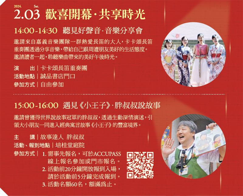 「小王子」一書出版至今80 年,行銷全世界,膾炙人口。新港店開幕季特推出「小王子特展」,臨街櫥窗小王子立像帥氣挺立,華文版之外,28個國家的譯本與立體繪本,琳瑯滿目地鋪滿這近十坪空間,令人留連忘返。